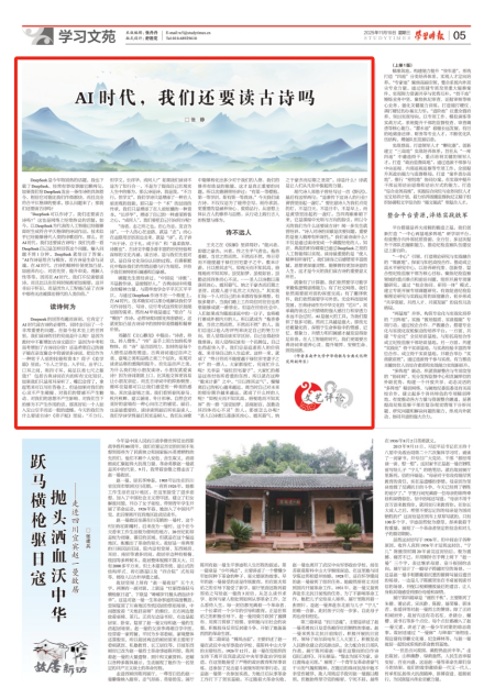 顾随先生曾经讲过,“中国说‘诗教’,不是教作诗,是使做好人。”古典诗词中所蕴含的精神力量,与简单地学会平平仄仄平平仄,与通过DeepSeek作诗不在一个维度上。在AI时代,技术确实可以部分地解决我们学习作诗技巧、写诗、应付考试这些知识技能层面的需求,然而AI毕竟是通过“组合”与“模仿”作诗,必然导致同质化和套路化,这就更加凸显古诗词中的独特审美情趣和精神价值。