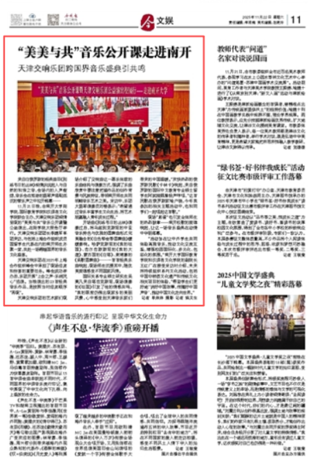 11月21日晚,由南开大学商学院、国际教育学院和汉语言文化学院联合主办,天津交响乐团倾情呈现的“美美与共”音乐公开课暨公益演出,在商学院大报告厅举行。天津交响乐团团长李建军率团来访,与包括上海合作组织成员国留学生代表在内的南开师生齐聚一堂,共赴一场跨越国界的音乐文化盛宴。