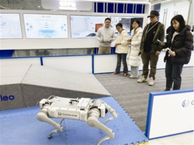 一走进位于天开津南园的伽利略(天津)技术有限公司,所有媒体记者立刻被演示现场的两台四足仿生机器狗吸引了。这只“钢铁萌犬”不仅在平地上行走自如,更在面对台阶时展现出了卓越的适应能力。从重大活动的安防巡检到危险的防爆区域,它都能替人上岗,甚至还会用“意念”(智能联动技术)隔空开门,是一支名副其实的硬核科技“汪汪队”。