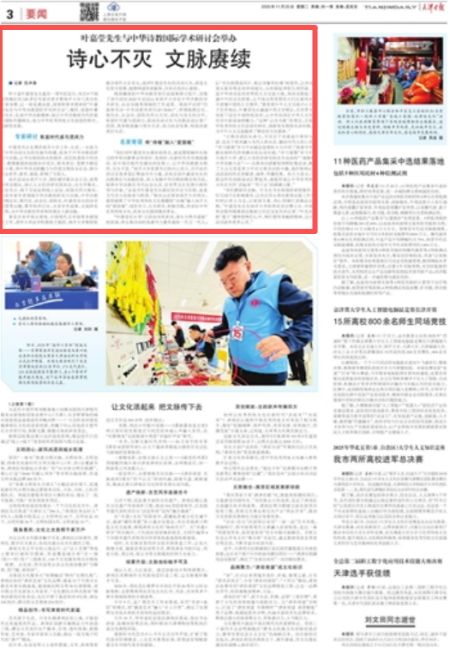 昨日是叶嘉莹先生逝世一周年纪念日,来自8个国家和地区的120多位专家学者齐聚南开大学八里台校区省身楼,以一场充满诗意、深情和学术精神的“叶嘉莹先生与中华诗教国际学术研讨会”,缅怀、致敬叶嘉莹先生,弘扬中华诗教精神,探讨中华诗教的当代价值与国际传播路径,助力中华优秀传统文化创造性转化、创新性发展。