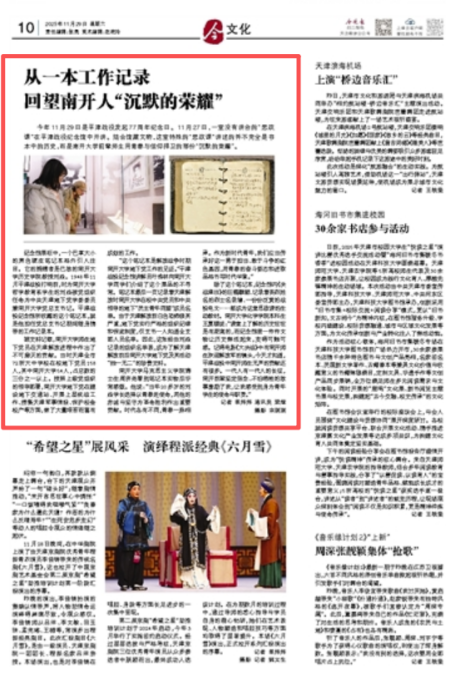 今年11月29日是平津战役发起77周年纪念日。11月27日,一堂没有讲台的“思政课”在平津战役纪念馆中开讲。结合馆藏文物,这堂特殊的“思政课”讲述的并不完全是书本中的历史,而是南开大学前辈师生用青春与信仰捍卫的那份“沉默的荣耀”。