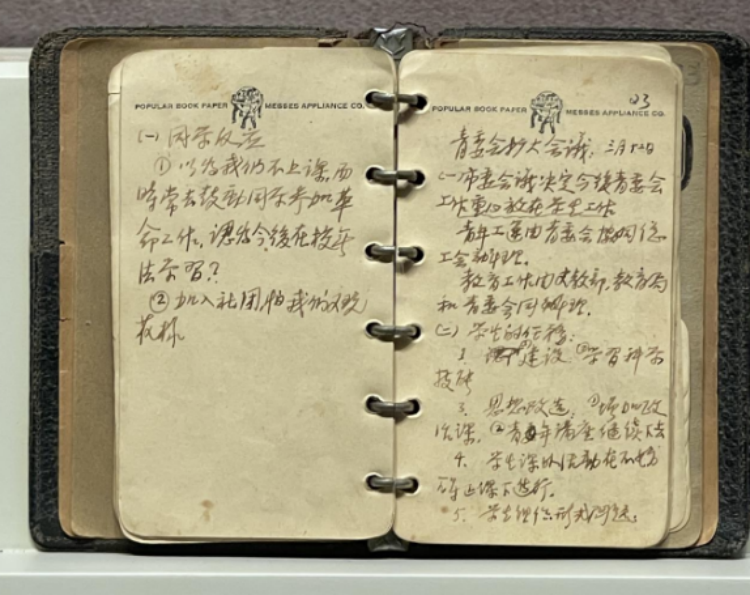 “这个笔记本是解放战争时期南开大学地下党工作的见证。”平津战役纪念馆讲解员叶浩林向南开大学同学们介绍了这个展品的不寻常之处。课程设计者、南开大学马克思主义学院副教授陆阳说:“在传统的课堂教学里我们会讲到解放战争中进步学生发挥的作用。今天,我们把课堂搬进了平津战役纪念馆,借由刘焱先生的笔记本,同学们能够清楚地看到当时的南开前辈是如何在党的领导下,冒着生命危险开展革命工作的,清楚地看到自己的学长学姐如何以一种智慧而隐秘的方式书写青春和信仰,这是南开人‘沉默的荣耀’。”南开大学马克思主义学院博士生周济尧看到笔记本实物后感慨万分:“20多岁的刘焱学长选择以青春赴使命,用他的赤诚与坚守为革命胜利作出重要贡献。时代各有不同,青春一脉相承。作为新时代青年,我们应当传承好这一勇于担当、敢于斗争的红色基因,用青春的奋斗姿态和进取品格书写时代华章。”