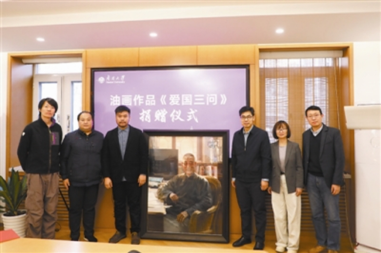 昨日,记者从南开大学获悉,天津画院签约画家崔明非向南开大学捐赠油画《爱国三问》。