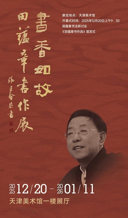 为纪念著名书法家、书法教育家、南开大学教授田蕴章先生,推动传统文化和书法艺术的传承发展,不断满足人民群众精神文化需求,天津市文学艺术界联合会、南开大学将于2025年12月20日至2026年1月11日,在天津美术馆举办“书香如故——田蕴章书作展”,并于展览首日举办专题学术研讨会和《田蕴章书作选》新书首发式。