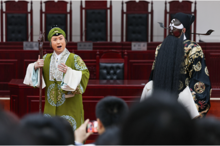 本次活动由南开大学京剧传承基地、法学院与天津京剧院联合举办,将京剧舞台置于庄严的模拟法庭之中,特邀名家演绎《赤桑镇》《铡美案》经典选段。