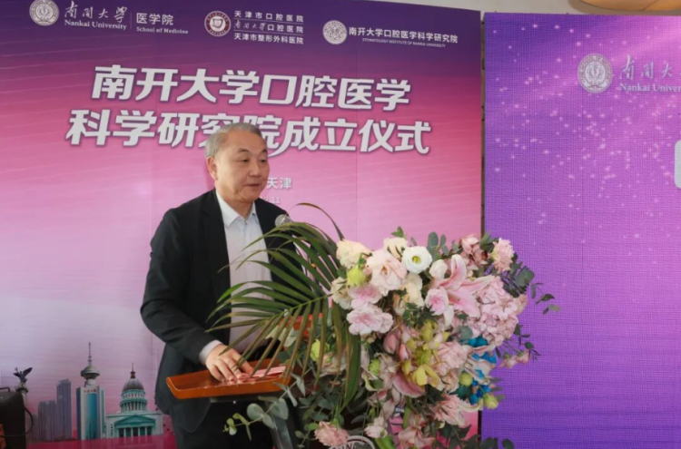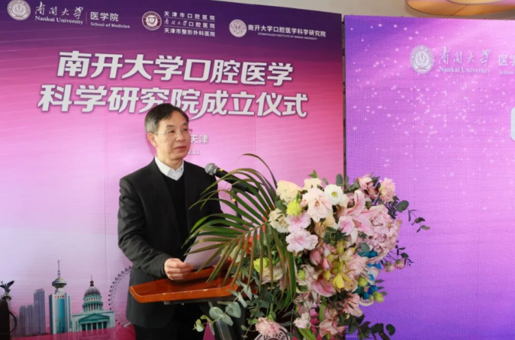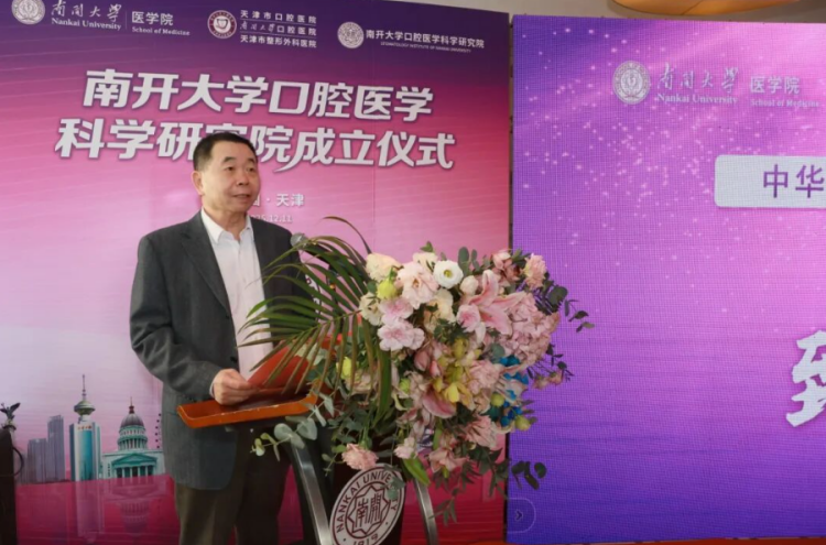 中华口腔医学会会长郭传瑸代表学会对研究院的成立表示热烈祝贺。他肯定了天津市口腔医院的历史贡献,并强调南开大学与口腔医院的强强联合,将为口腔医学事业发展注入新活力。他对研究院未来发展提出四点期许:坚持创新驱动、加强人才引育、深化产学研用融合、扩大国际交流,力争产出更多原创性成果。