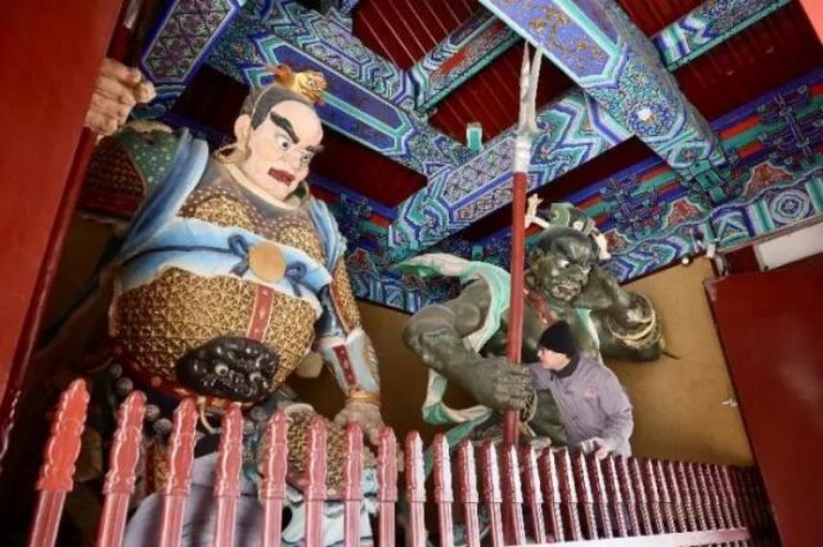 700年来,这座打破古建“坐北朝南”惯例的庙宇,以“坐西朝东”之姿,静看海河潮起潮落。现如今,12个殿宇内的46尊塑像经历岁月的洗礼,已出现色彩剥落的迹象。“这是自1986年以来规模最大、范围最广的塑像修复工作,也是为迎接明年天津天后宫敕建700周年而进行的。”天津民俗博物馆馆长刘静说,“经过多方考虑,最终选择了采取开放作业的形式,欢迎市民游客前来见证这场传统技艺与百年古建的碰撞交融,沉浸式感受老城津韵的独特魅力。”
