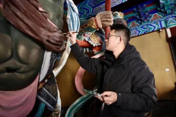 听到赵阳的这番话,一旁默默上色的老师傅刘宏竖起了大拇指:“我和老李以后可以安心退休啦!我们这一代人是日积月累,干出来的经验。现在不仅要传授技艺,更要让年轻人理解这份工作的精神内核。”刘宏指着一尊塑像说道:“看这衣纹的流动感,这不仅是技术,更是对生命的理解。没有这种理解,再精湛的技艺也只是空壳。”
