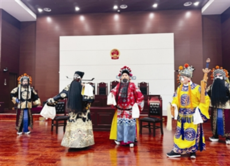 活动现场,天津京剧院名家、著名女花脸刘嘉欣,携手剧院老旦演员史绍跃、文武老生演员王帅军,精彩演绎经典“包公戏”《赤桑镇》与《铡美案》选段。刘嘉欣告诉记者,这是她首次在“模拟法庭”场景中演绎刚正不阿的包青天。“今天的演出,借助舞台调度与场景设计融入新颖表现形式,既展现了京剧舞台上包公廉洁奉公的经典形象,也让我更深刻地体悟到其在当下的社会价值。”