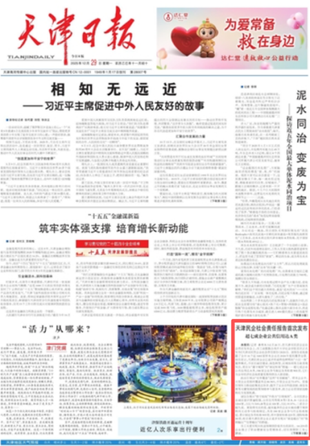 报告显示,天津民营企业履行社会责任整体态势积极向好,正持续在中国式现代化天津实践中展现新担当、新作为。