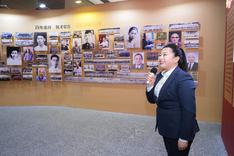 “我抽到的是五号,那我以后就叫‘伍豪’了!”在介绍青年周恩来事迹的展板前,南开大学原创话剧《周恩来回南开》剧组的学生演员们用铿锵有力的戏剧语言,再现了百年前那个在南开大学求学并组建觉悟社的青年周恩来形象。台上“愿相会于中华腾飞世界时”的呐喊,与台下新时代南开青年的目光交汇,完成了一场跨越时空的青春对话。