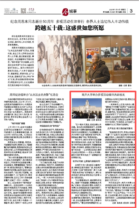 在南开大学八里台校区主楼南广场、津南校区图书馆前广场,来自南开大学第十五届“周恩来班”、第十九届“周恩来奖学金”初评候选人、博士生讲师团代表和各学院师生代表等50余人参加活动。