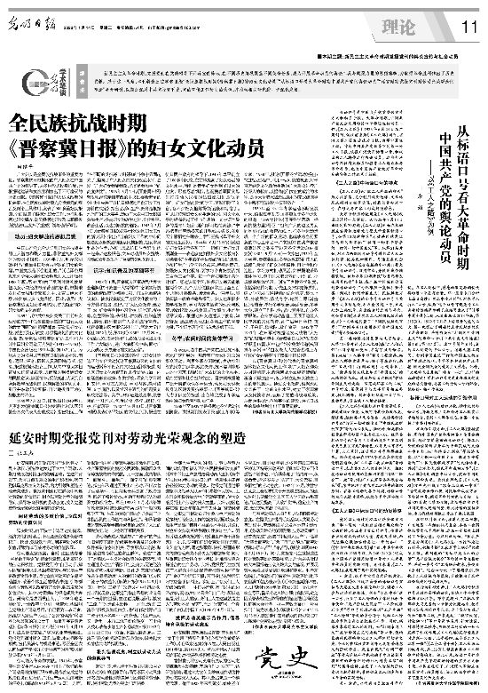 延安时期,党报党刊注重引导群众树立以劳动为荣的道德导向,倡导不因劳动具体形态、劳动者性别等差异而区别看待劳动问题,使得劳动光荣的观念广泛传播。