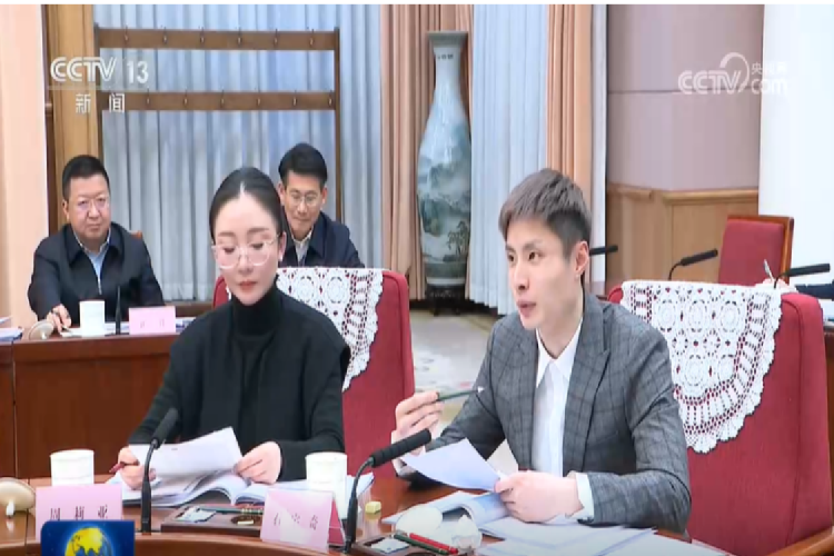新华社报道中提到的9名在座谈会上发言的分别是中信证券首席经济学家明明、南开大学金融学院副院长贺佳、MiniMax稀宇科技CEO闫俊杰、国家电网有限公司董事长张智刚、北京大学校长龚旗煌、中国信息通信研究院院长余晓晖、首都医科大学附属北京天坛医院院长王拥军、中国东方演艺集团国家一级编导周莉亚、羽毛球世界冠军石宇奇。
