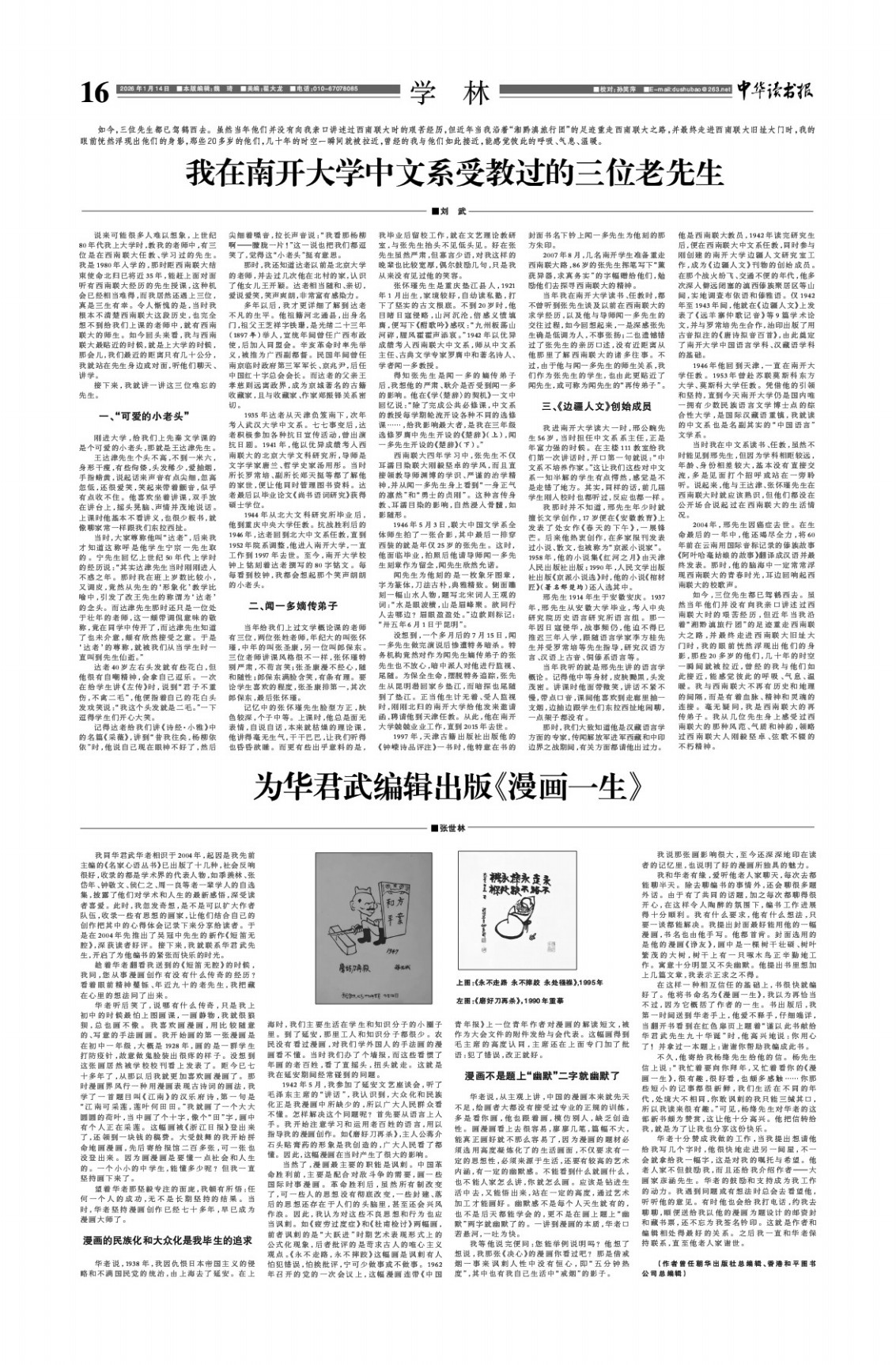 没想到,一个多月后的7月15日,闻一多先生做完演说后惨遭特务暗杀。特务机构竟然对作为闻先生嫡传弟子的张先生也不放心,暗中派人对他进行监视、尾随。为保全生命,摆脱特务追踪,张先生从昆明潜回家乡垫江,而暗探也尾随到了垫江。正当他生计无着、受人监视时,刚刚北归的南开大学给他发来邀请函,聘请他到天津任教。从此,他在南开大学兢兢业业工作,直到2015年去世。