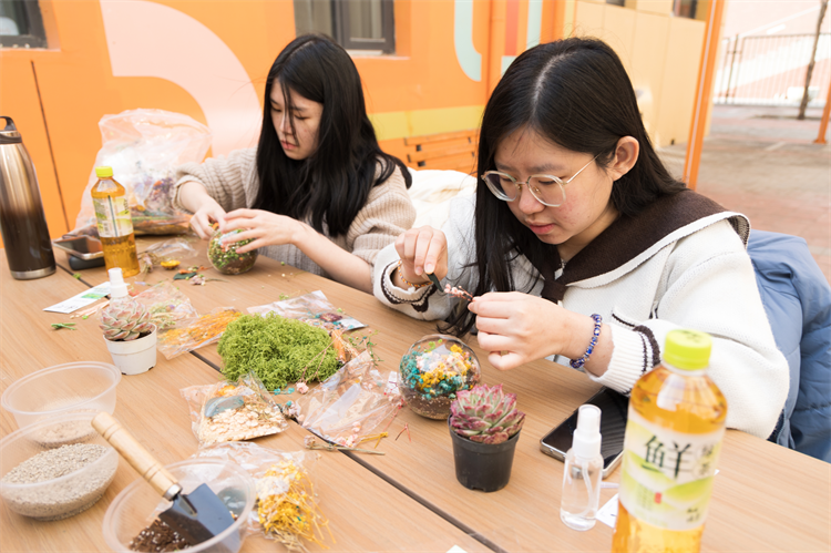 英语系外籍教师金英乔和同学们一同体验了微缩景观的制作,他说:“此次活动不仅让我感受到了春日的独特韵味,更通过和大家一起答题加深了对中华节气文化的理解,趣味十足又意义非凡。”