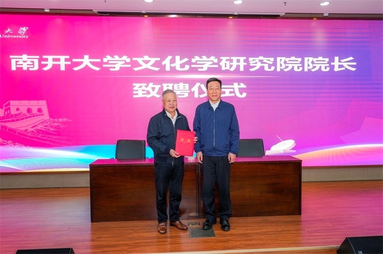 座谈会上,杨庆山向刘瑞旗致送聘书,聘任其为南开大学文化学研究院院长。