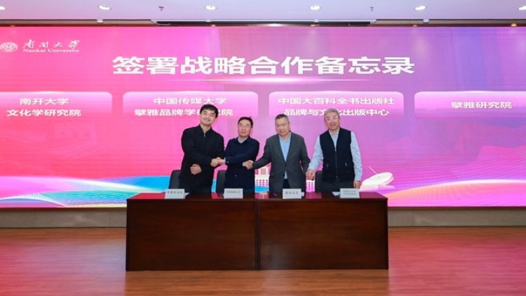 现场,南开大学文化学研究院、中国传媒大学擘雅品牌学研究院、中国大百科全书出版社品牌与文化出版中心、擘雅研究院共同签署了战略合作备忘录。