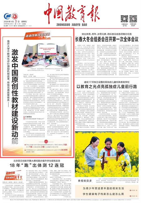 “作为改革试点高校,学校立足制约原创性教材建设的核心问题,聚焦‘评价认可、激励保障、培育提升’三大关键环节,推出一系列针对性举措,构建起全方位、全链条的评价激励长效机制。”南开大学校长助理、教务部部长李月琳说。