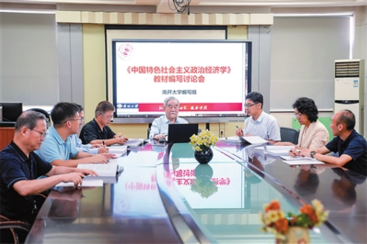 “中国系列”原创性教材《中国特色社会主义政治经济学》南开大学编写组正在研讨交流。