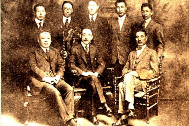 赴美考察期间,张伯苓(前排右一)与严修(前排居中)、孙凤藻(前排左一)等合影