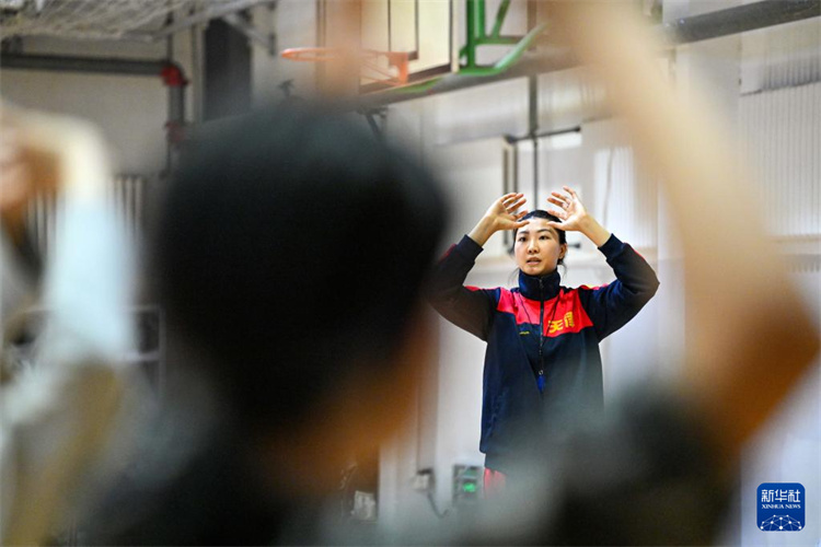 袁心玥(右)在南开大学八里台校区体育馆授课(4月10日摄)。新华社记者 李然 摄