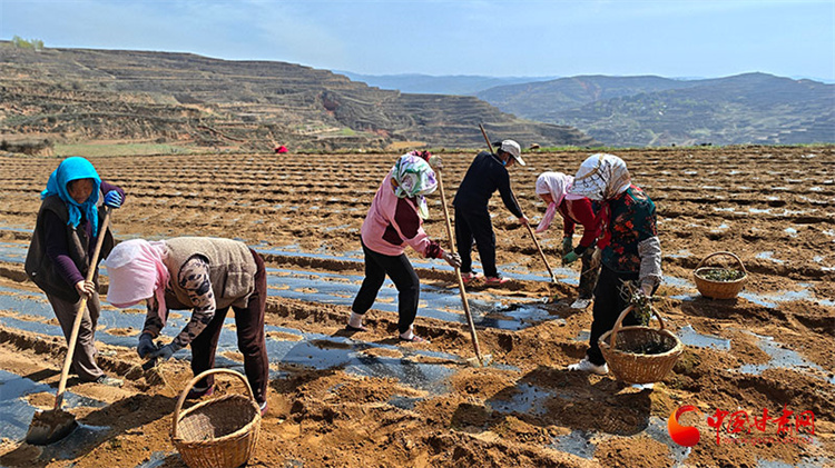 群众抢抓农时、躬身劳作,一株株承载着增收希望的药材幼苗被精心栽种