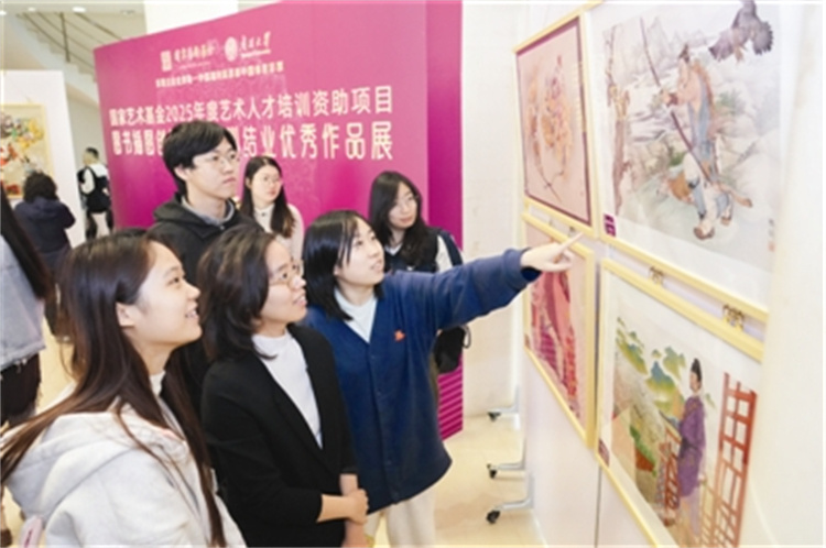昨日,国家艺术基金2025年度艺术人才培训资助项目《图书插图创作人才培训》结业作品展在南开大学东方艺术大楼举行。展览以“与文字对话”为主题,集中呈现30名参训学员的匠心之作,体现了“插图与文字深度互动、互为诠释”的创作理念。