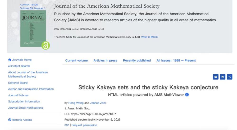 Joshua Zahl与合作者的论文在国际顶尖数学期刊《美国数学会杂志》在线发表。这是Joshua Zahl入职南开大学以来发表的第一篇文章。