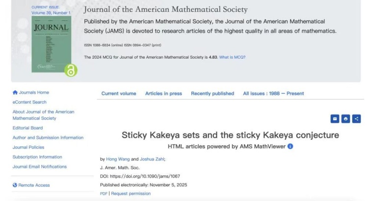 Joshua Zahl与合作者的论文“Sticky Kakeya sets and the sticky Kakeya conjecture”在国际顶尖数学期刊《美国数学会杂志》在线发表。这是 Joshua Zahl入职南开大学以来发表的第一篇文章。