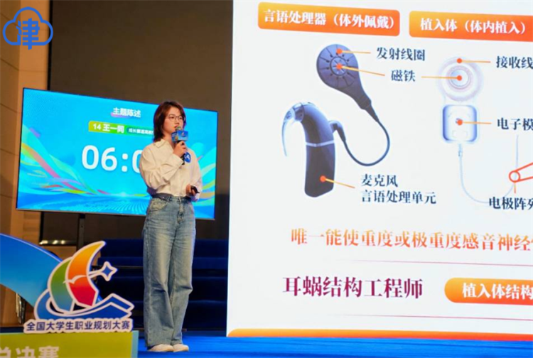 这一理念在参赛选手身上得到了生动体现。天津大学机械工程学院2023级本科生王一同是一名听障学生,职业理想是成为一名人工耳蜗结构工程师,制造出更先进的助听设备,造福更多听障人士。在比赛现场,她以坚韧不拔的意志和清晰的职业目标几乎打动了全部30家“心选团”企业代表,不仅收获了29份实习意向offer,还一举拿下了成长赛道金奖的好成绩。