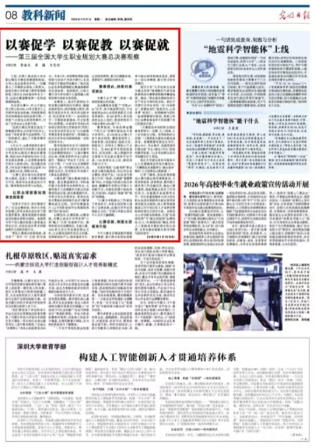 记者了解到,各地各高校推动大赛与就业指导课程建设、日常求职咨询、困难帮扶、教师能力提升等工作互融互促,推动大赛与课程、咨询等就业指导工作同向发力,全面提升生涯教育水平。河北省遴选建设15所大学生职业生涯发展教育与就业指导改革创新试点高校,纳入教育强国建设三年行动计划人才培养供需机制改革试点项目内容。吉林农业大学创新体验载体,打造“生涯体验周”与“就业体验周”品牌活动,引入“AI赋能体验”模块,利用人工智能技术模拟真实职业场景,为学生提供智能化简历诊断与面试指导……