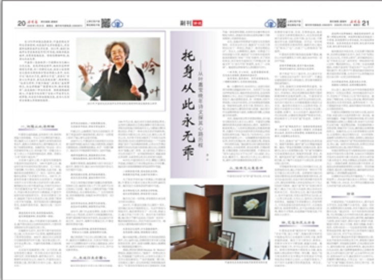 尽管她曾多次表示自己向来胸无大志,但是看她的诗词,她心中始终怀有一种对天下苍生不能自已的关怀之情。这种感情与她自幼受到诗歌和《论语》的熏陶有着密切的关系,因为无论是《论语》,还是中国古典诗歌中的优秀之作,都包含着积极入世的态度和以天下为己任的担当精神。她在“道”和“诗”的指引和召唤下,做出了自己的人生选择,即以诗词文化传承为己任。而在择定之后,她不是浅尝辄止,也未半途而废,而是从始至终全力以赴,以一以贯之的态度,生死以之,坚持自己的诗词传承事业。她超越了许多前辈诗人、作家和哲人,不再是悲剧式的哀叹吾道不行,无奈地抱憾终身,惋惜梦想落空,也不是决绝地玉碎身殉,惆怅天才陨落,而是圆融平和地完成了自我的人生持守。