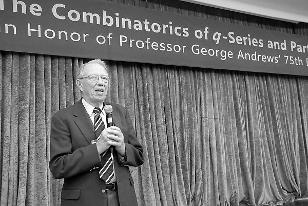乔治·安德鲁斯是美国数学会前任会长、美国科学院院士、宾夕法尼亚州立大学教授。安德鲁斯在数论与组合数学领域作出了杰出贡献,先后在国际权威杂志上发表论文近300篇。他对于艰深的纯数学理论,例如数论和分拆理论等有深入的研究,解决了其中的多个著名难题,在国际数学界产生了重要影响。安德鲁斯撰写了整数分拆理论的第一部专著《TheTheoryofPartitions》,现已成为该领域的经典著作。他对印度传奇数学家拉马努金的工作有深入的研究。自1976年在剑桥大学三一学院图书馆发现了拉马努金的138页手稿之后,便开始与布鲁斯·伯恩特教授合作整理、研究拉马努金的工作。他们已基本证明了拉马努金留下的数学公式,《Ramanujan’sLostNotebook》第一、二卷也分别于2005年和2009年出版。安德鲁斯还和中国组合数学界有着密切的联系和合作关系。他认为南开大学组合数学中心是世界上最有活力和愿景的研究机构之一,他将继续关心和支持组合数学中心的研究工作和人才培养,并希望中美数学家进一步加强交流与合作。
