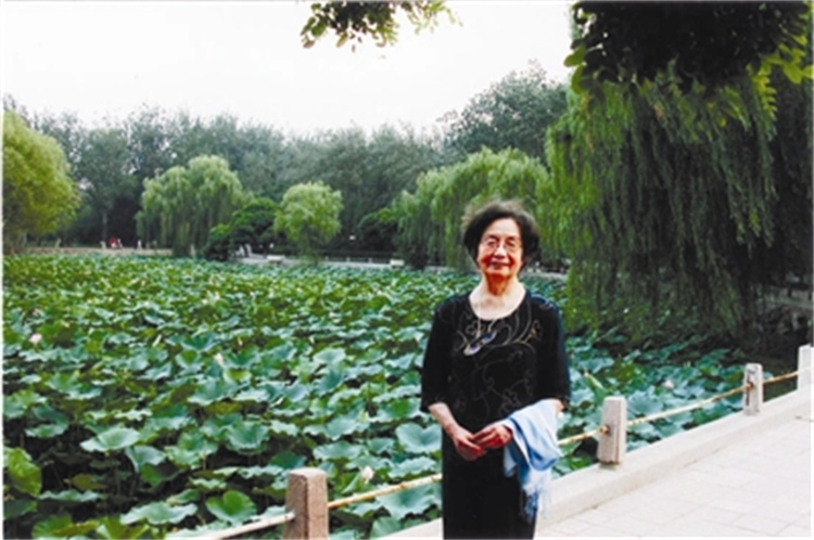 2007年,叶嘉莹先生在南开大学马蹄湖畔(迦陵学舍供图)