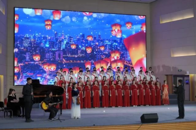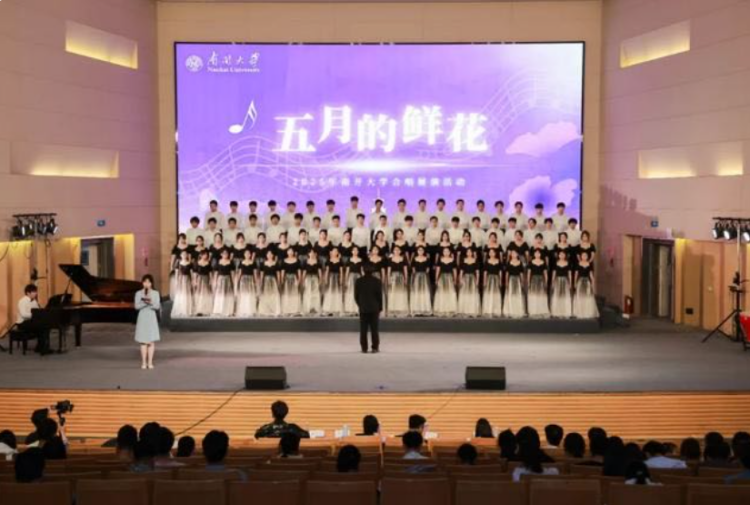 五月十八日,南开大学举行主题音乐会;各学院合唱团纪念抗日战争胜利八十周年和南开大学学生合唱团三十周年华诞。