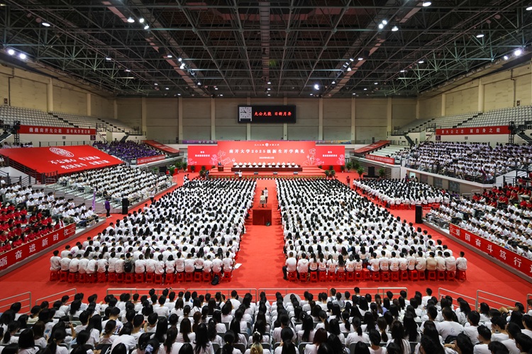 南开新闻网讯(记者 高雨桐 闫瑾 学生记者 王晶 袁鹤宁 摄影 宗琪琪 李享 刘冠艺 唐浩博 张韶轩 丁士圻 尤贺 余梦盈 韦鹏 苏雨辰 李宜霏 蒋天一 于越)金秋时序启新程,百年薪火开新篇。9月13日,南开大学2025级新生开学典礼分别在八里台校区、津南校区举行。1万余名本硕博新生从五湖四海相聚南开园,满怀期待和热爱,让青春的梦想在此处启航,未来的篇章从南开起笔。