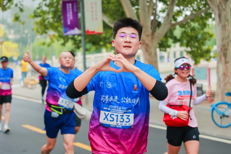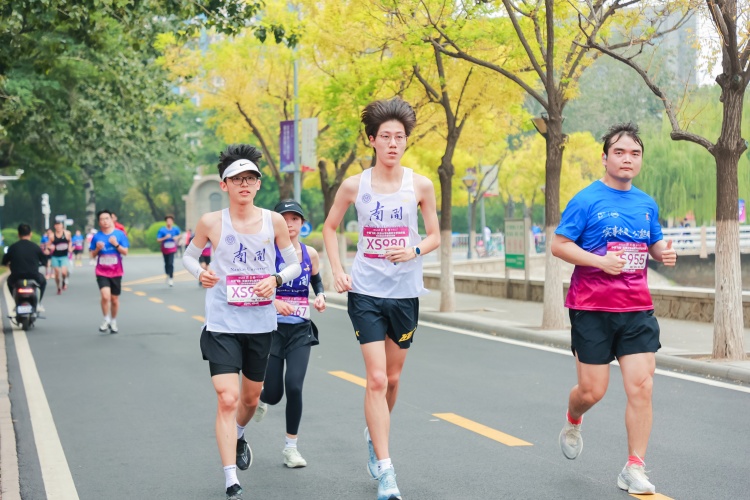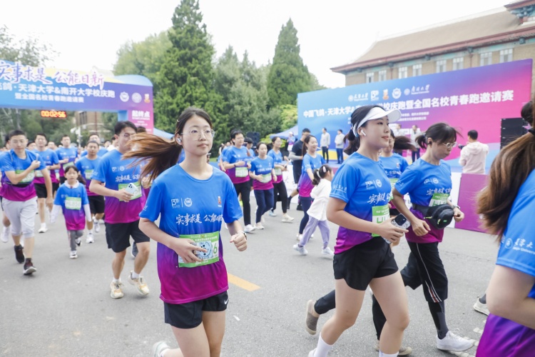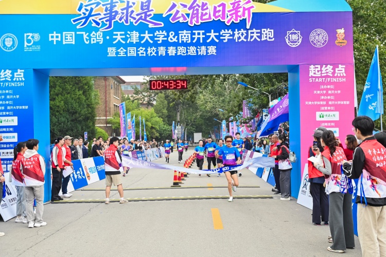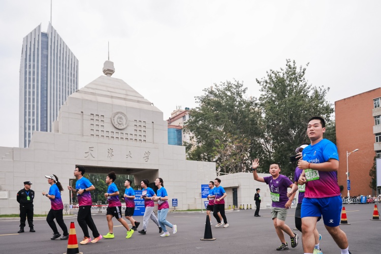 该赛事穿越南开大学八里台校区和天津大学卫津路校区,途径南开大学马蹄湖、新开湖、周恩来总理塑像和天津大学青年湖、敬业湖、北洋广场等地标,参赛选手在这方文化沃土上奔跑,感受百年积淀的浓厚氛围。赛道两旁,加油助威声此起彼伏、志愿者全力做好赛事保障,师生校友们的热情点燃了秋日的校园。一幕幕温情画面构成了校庆期间最动人的风景。
