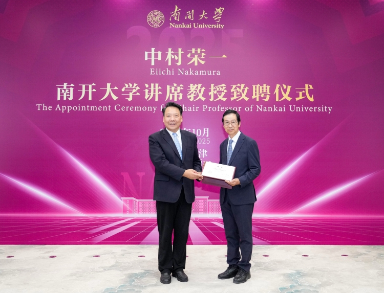 中村荣一向南开大学的聘任表示感谢,并介绍了自己的学术经历、科研成就以及育人理念。他表示,作为科学家,本职工作就是回报社会、回应人民的朴素需求。希望在既有良好合作的基础上,与南开大学的专家学者、一流团队继续联合攻关,在科学研究、人才培养方面取得更多硕果,同时推动南开大学与东京大学达成更多实质性合作。