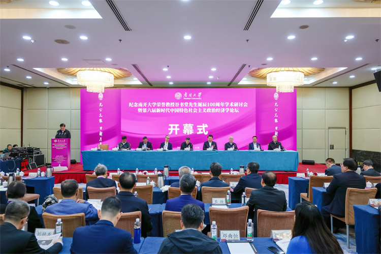 南开新闻网讯(记者 闫瑾 学生记者 张馨予 冯昕睿 摄影 唐浩博)10月11日,纪念南开大学荣誉教授谷书堂先生诞辰100周年学术研讨会暨第六届新时代中国特色社会主义政治经济学论坛在津举行。来自北京大学、清华大学、中国人民大学、中国社科院大学、南京大学、复旦大学、武汉大学、吉林大学、山东大学、中央民族大学、辽宁大学、山西大学等全国各高校和研究机构200多名专家学者齐聚一堂,缅怀和纪念谷书堂教授一生治学育人的卓越成就,激励后辈为以中国式现代化全面推进强国建设贡献力量。