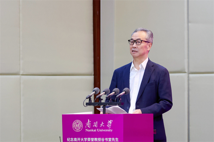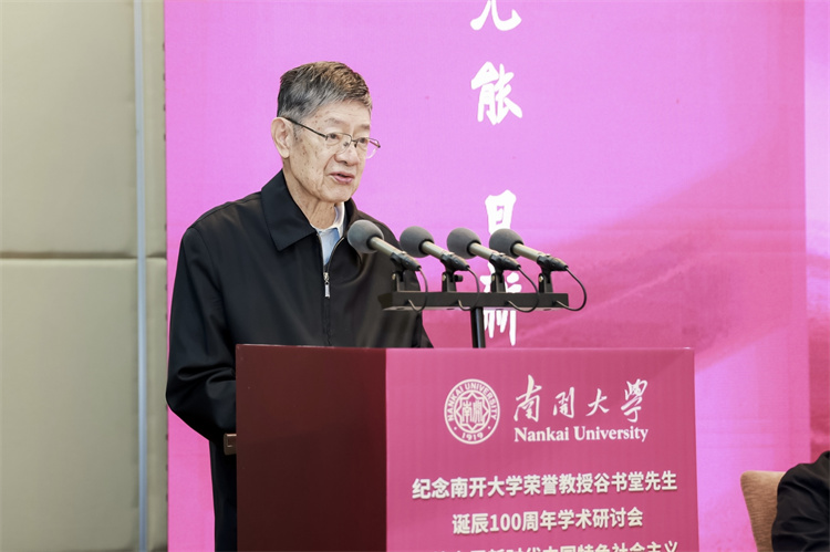 当天下午,在经济学院举行了纪念南开大学荣誉教授谷书堂先生诞辰100周年学术研讨会。南开大学副校长、经济学院院长盛斌致辞。马建堂,洪银兴,国家发改委宏观经济研究院教授常修泽,辽宁大学资深教授、国民经济研究院院长林木西,山西经济出版社社长贺权和谷书堂先生的生前好友、同事、学生等参会嘉宾,回顾了谷书堂先生的治学历程,高度评价他“信仰坚定、和而不同”的学术风骨。纪念谷书堂先生,不只是追忆过往,更要学习他“知中国,服务中国”的初心、突破创新的勇气与育人情怀,激励后辈学者扎根中国实践,为构建中国经济学自主知识体系、推进强国建设贡献力量。