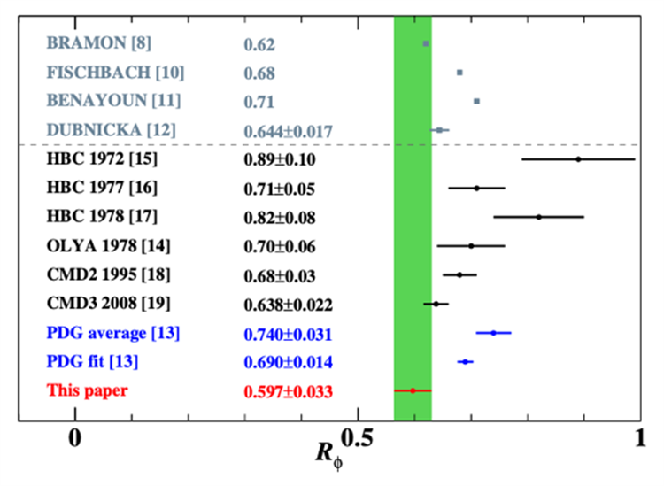 phi介子含有大量正反奇异夸克成分,其衰变处于非微扰量子色动力学的区域,对于研究强相互作用和电弱相互作用都具有重要意义。phi介子主要衰变到中性和带电K介子对,这两者的分支比总和超过80%。因此,精确测量这些分支比及其比值具有重要的理论和实验意义。然而,R_phi=B(phi->K_S^0K_L^0)/B(phi->K^+K^-)的实验数据已经几十年未更新,且与理论预测值之间存在矛盾。所以,用一种独立于以往方法的新途径来测量R_phi非常重要。