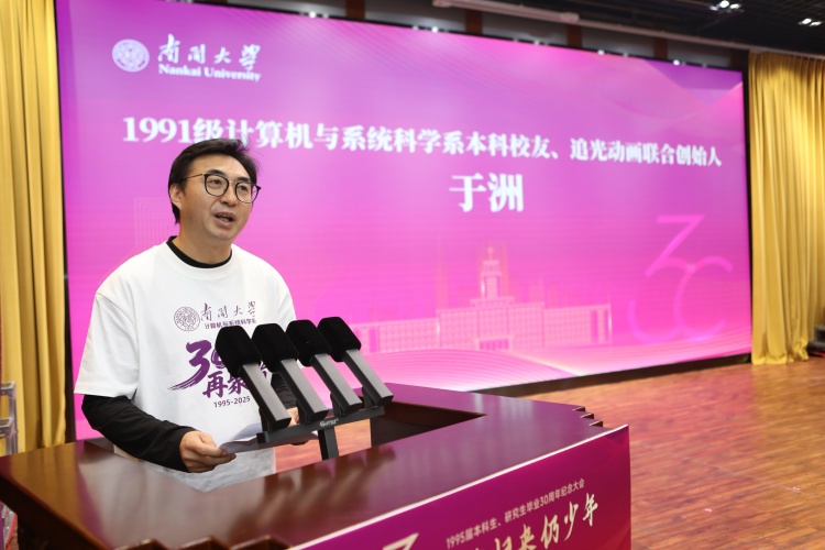 30年,时光易改容颜,却改变不了根植在南开人心中的深深情愫和永恒眷恋。1991级计算机与系统科学系本科校友、追光动画联合创始人于洲,1984级社会学系本科、1992级社会心理学专业硕士、2000级政治经济学博士校友、天津海河传媒中心今晚报文化新闻和特稿部主任、高级记者刘强,作为校友代表分享了他们的同窗情、师生情与南开情。