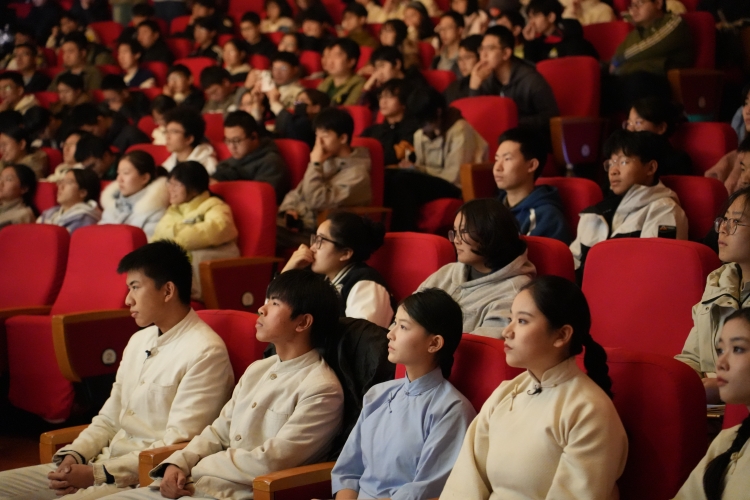 开场前一小时,音乐厅外已聚满满怀期待的学生。大厅荧幕上,“你是中国人吗?你爱中国吗?你愿意中国好吗?”庄重地置于画面中央,新生们步入剧场,无不驻足凝望,目光中饱含着崇敬与思索。