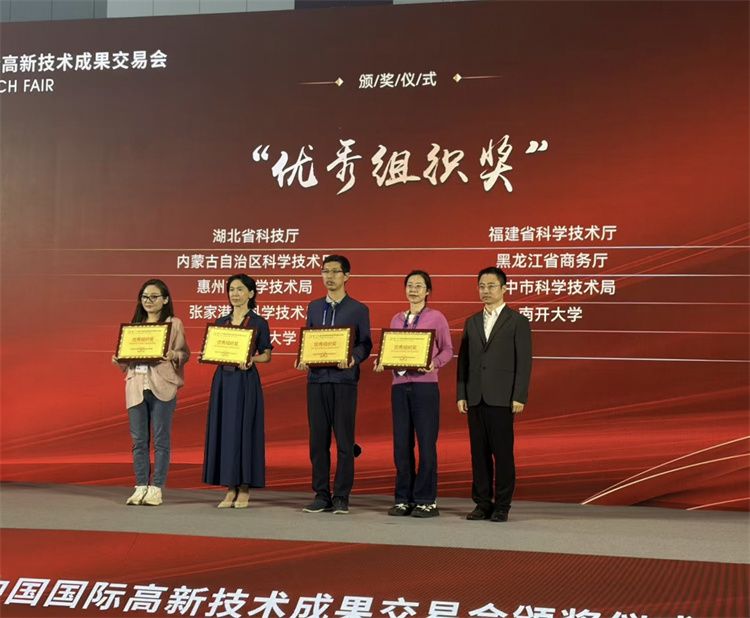 会展期间,我校展示项目“新型多孔吸附材料”“全地形智能电驱运载装备”“仿鳐鱼水陆两栖机器人”“氯水清山”“磁控式靶向施药胶囊机器人”“生物型人工血管”等受到专业观众及投资机构的关注。另外,“全氟聚醚的合成”“车内智能异味检测装置”“李斯特菌智能检测仪”“仿鳐鱼水陆两栖机器人”及“新型智能纤维材料—人工肌肉纤维”等五个项目获得“优秀科研成果创新奖”;南开大学获“优秀组织奖”和“优秀展示奖”。
