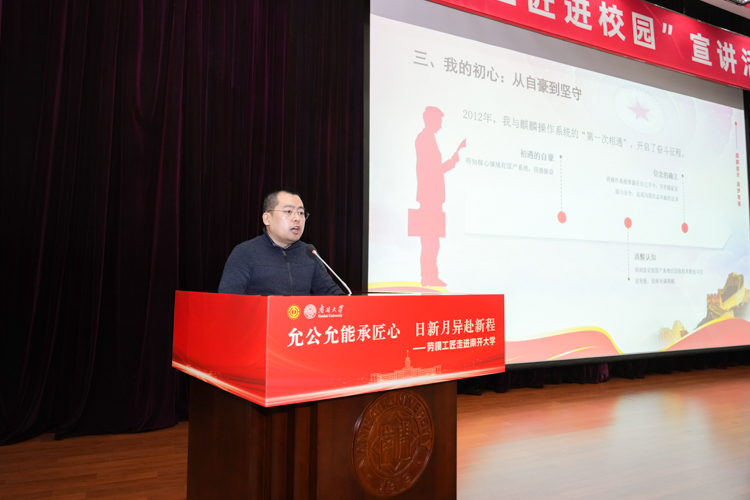 全国五一劳动奖章获得者、麒麟软件有限公司终端研发中心AI研发部总经理张超自2012年加入公司以来,一直奋斗在国产麒麟操作系统研发和应用的第一线。秉持着“岗位在变,信念不变”的理念,张超始终保持着开放的心态和积极的探索精神,带领团队不断实现突破。“实验室里每一次平凡的实验,都是在为科技强国积蓄能量!”张超用铿锵有力的话语勉励在场青年学子。