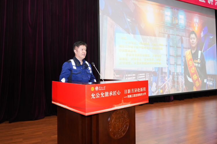 黄旭、张超、王芳、段凯、宫艳红等五位来自一线的全国劳模和工匠代表,为南开师生讲述了他们扎根一线、实干报国的奋斗故事和创新历程。