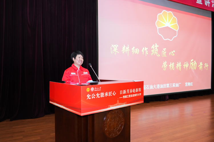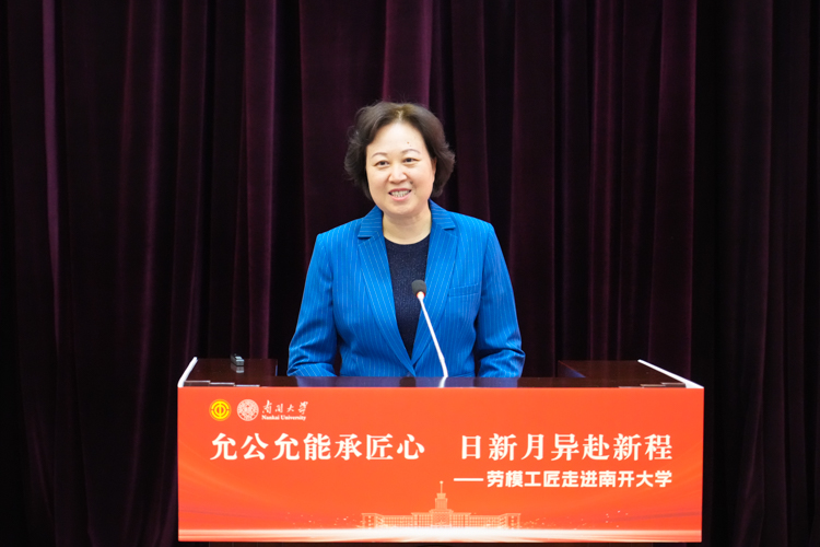 校党委副书记、工会教代会主席梁琪指出,南开大学追求卓越的办学理念,与新时代倡导的劳模精神、劳动精神、工匠精神高度契合。希望广大师生通过聆听劳模故事,感悟榜样力量,坚定接续奋斗的信心,将精神认同转化为爱岗奋斗、实干实学的行动自觉。
