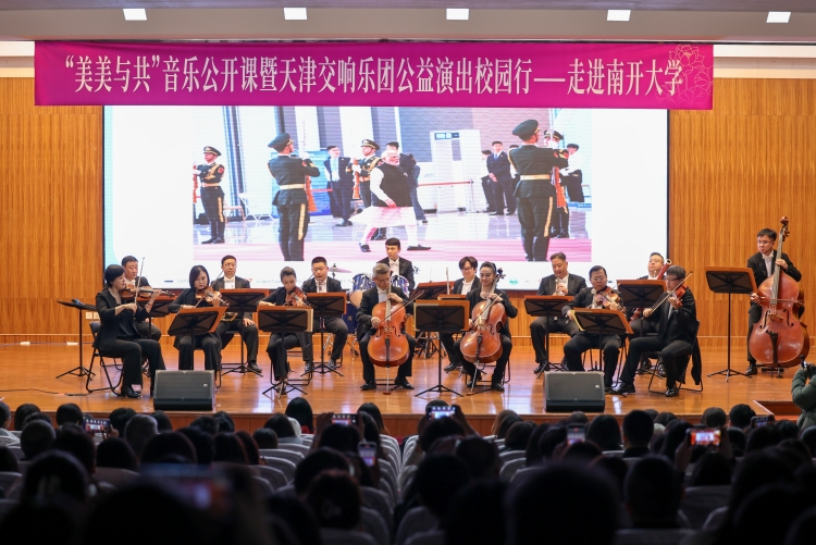 天津交响乐团在2025年上海合作组织峰会中承担了现场迎宾和伴宴的重要任务。乐团以高超的艺术水准、扎实的专业素养以及对文化传承的使命担当,彰显大国外交的善意与暖意。峰会成功举办后,乐团开展“上合之声·乐润民心”巡演。此番来到南开大学,天津交响乐团再现上合峰会迎宾曲目中的经典音乐作品,以高雅文化浸润校园,推动上合之声持续传播弘扬。