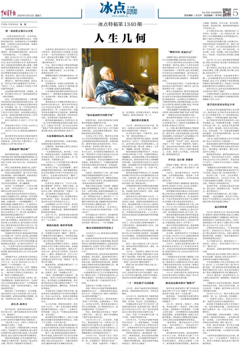 编者按:今天是陈省身先生逝世21周年,《中国青年报》“冰点周刊”专版推出特稿《人生几何》以纪念这位伟大的国际数学大师。南开新闻网全文转载,以飨读者。